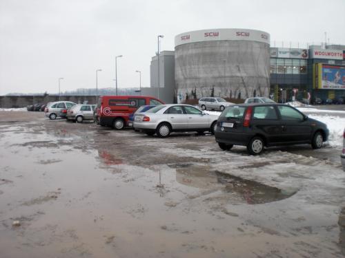 Die Idee war ja ganz gut hier ein Einkaufszentrum zu bauen, nur sollte man dann nicht die Besucher auf so einen Parkplatz wie auf diesen Bild hier schicken (die Gummistiefelausgabe habe ich leider nicht gefunden).